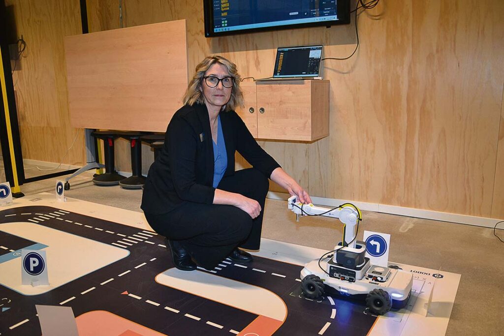 – I lokalerna har vi byggt upp olika miljöer, allt från uppdragsrum med industrirobotar till lekytor med robotar för förskolebarn där barnen får testa olika sorters programmering. Här finns även 3D-printrar, tekniskt lego, VR, och en green screen, berättar Camilla Johansson.