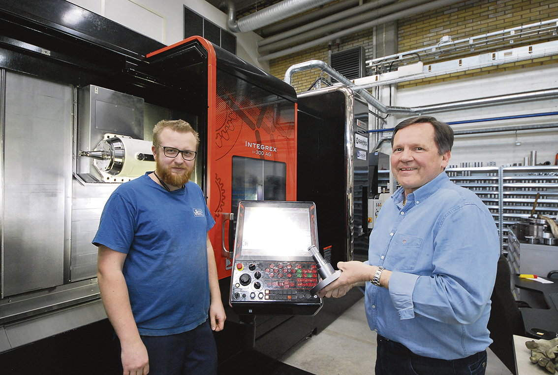 Här på fotot ser vi Norden premiären för Mazak Integrex i-300AG (AutoGear.) Maskinoperatören Pontus Hanqvist och vd Istvan Kasa är mycket nöjda med maskinkonceptet.