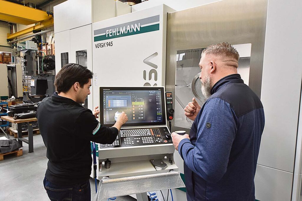 – Maskinen är utrustad med Heidenhain TNC 7, nu med en 24″- pekskärm. I styrsystemet har FEHLMANN utvecklat en mängd egna menyer och funktioner för maximal användarvänlighet.