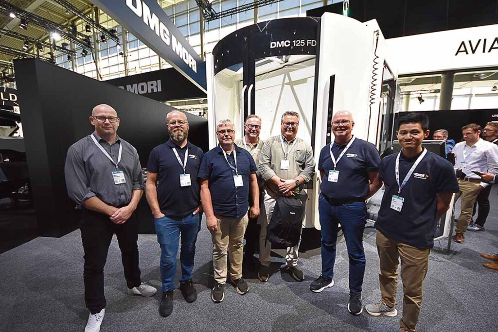 – Ett måste för oss som sysslar med produktionsutveckling och ny teknik, sa grabbarna. Bilden tog vi i DMG MORI montern.